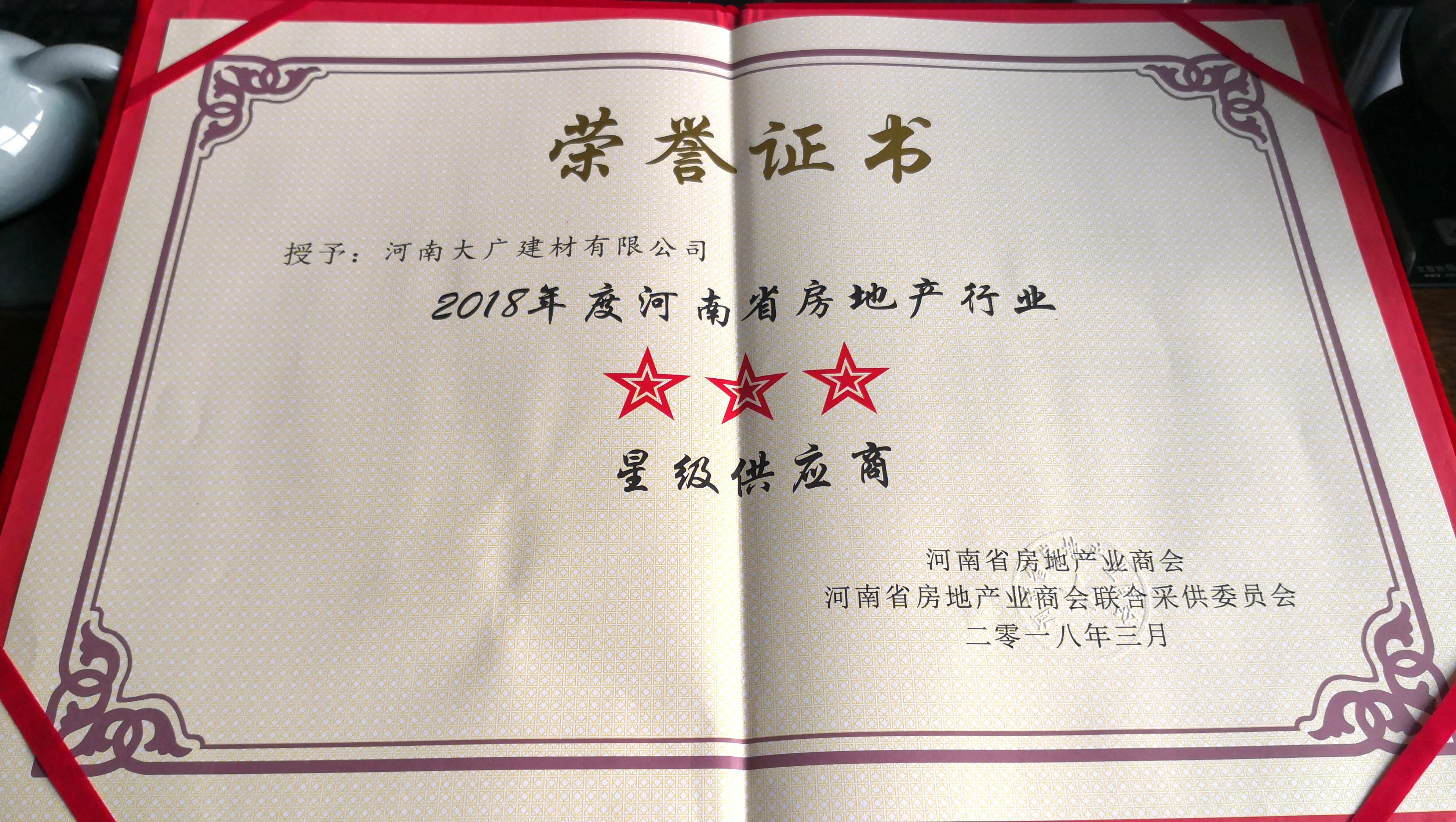 2018年度 河南房地產(chǎn)商會 星級供應(yīng)商