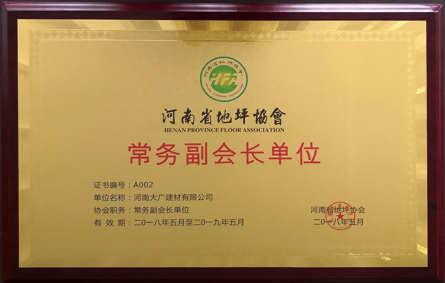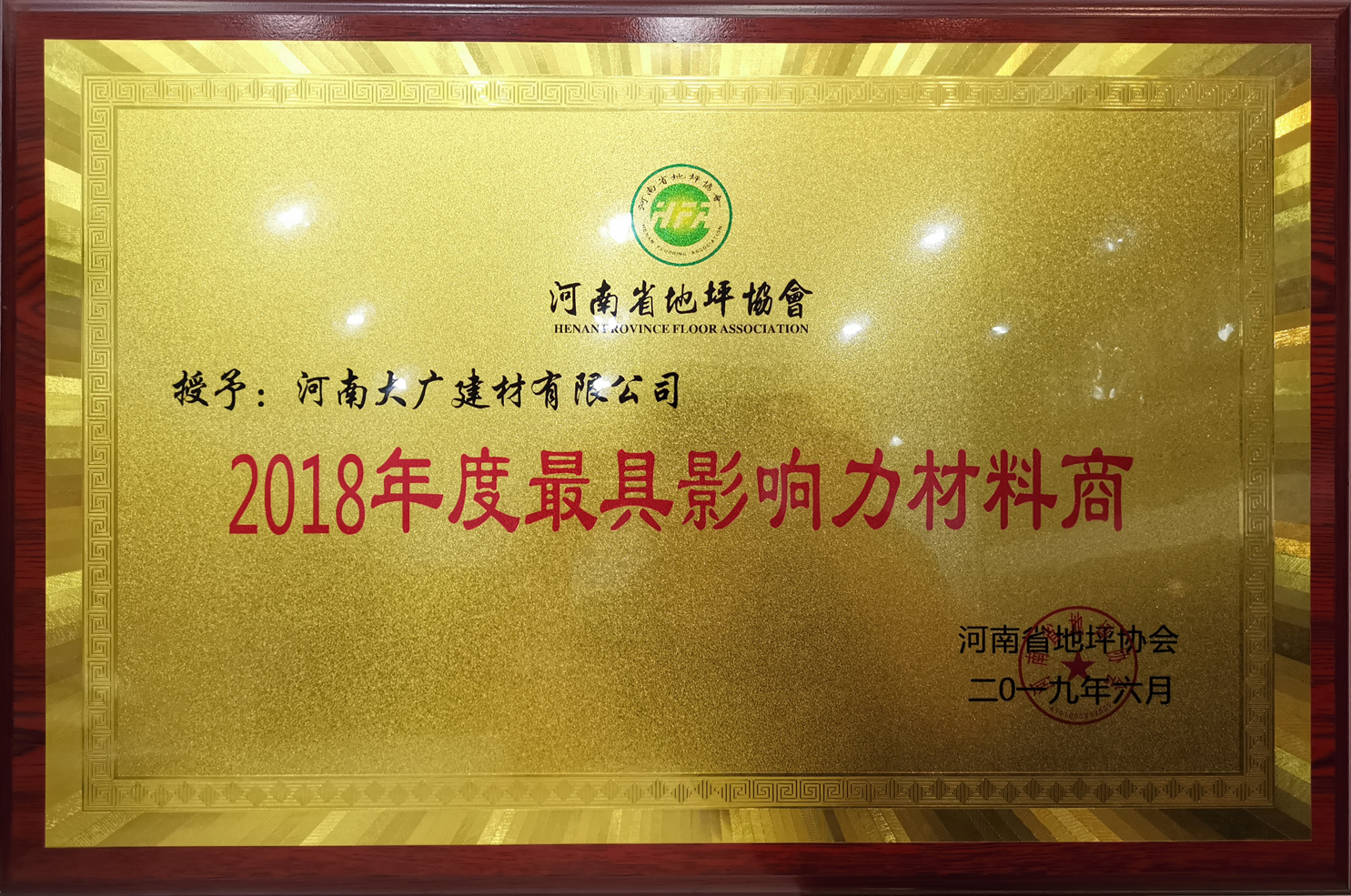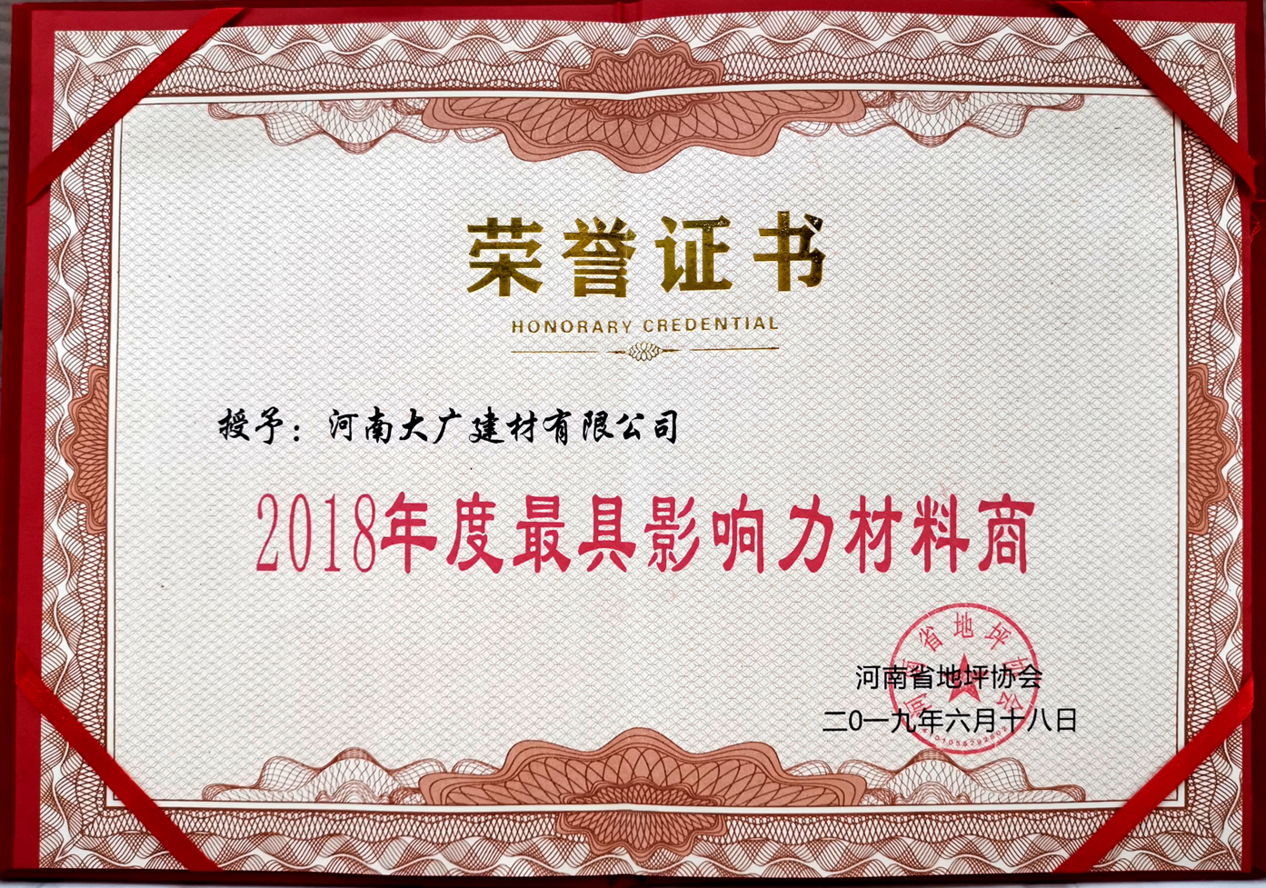 榮獲:2018年度河南省地坪協(xié)會*具影響力材料商 稱號